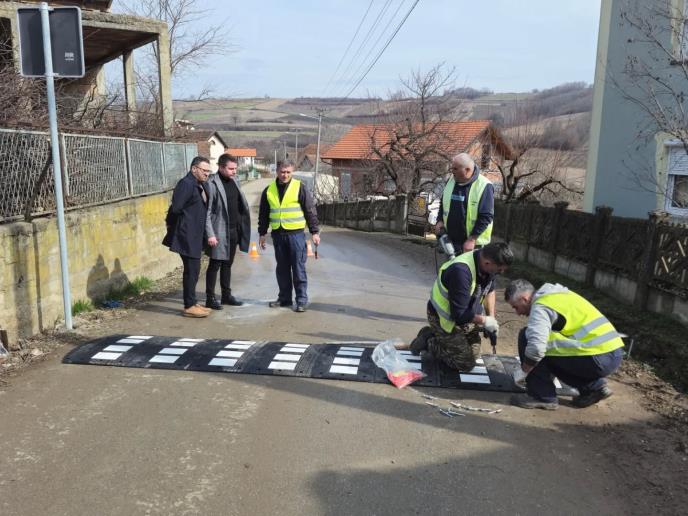POSTAVLJANJE USPORIVAČA BRZINE U ZONAMA ŠKOLA: Opština Trstenik brine o bezbednosti dece u saobraćaju (FOTO)