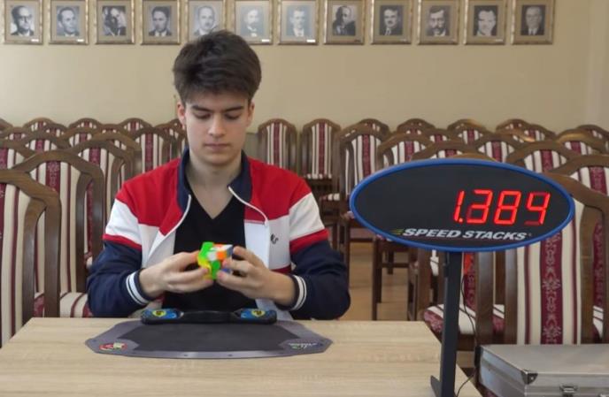 Ovaj talentovani srednjoškolac, oborio je čak 31 nacionalni rekord i osvojio titulu najboljeg spidkjubera Srbije 2024. godine. Njegova veština slaganja Rubikove kocke je impresivna, a kocku može da složi čak i nogama.