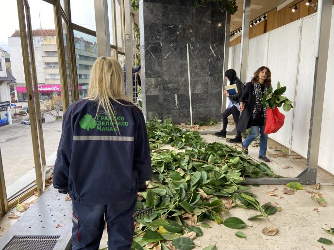 Jelena, Goran i Radovan radnici JKP “Gradsko zelenilo” već dva dana rade na orezivanju krošnje džinovskog fikusa u Čačku. Na desetine Čačana je došlo po reznice ove tropske biljke, koje kada se ožile i zasade većina će završiti van grada na Moravi. Raskošna krošnja zelenog gorostasa u zgradi Kulrurnog centra trenutno se skraćuje i do tri metra, ali njegova krošnja ostaje i dalje dugačka više od 40 metara što ga čini najvećim fikusom na Balkanu koji raste u zatvorenom prostoru.