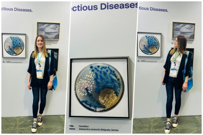 Na mikrobiološkoj podlozi, koristeći različite sojeve bakterija kao boje i sterilne alate umesto četkice, Aleksandra je oslikala maslačak u raznim fazama -od cvetanja do rasipanja semenki na vetru. Ova umetnička vizija simbolično prikazuje promene kroz godišnja doba i postepene klimatske promene, koje direktno utiču i na širenje infektivnih bolesti -što je i bila glavna tema ovogodišnjeg kongresa: „Klimatske promene i infekcija”.