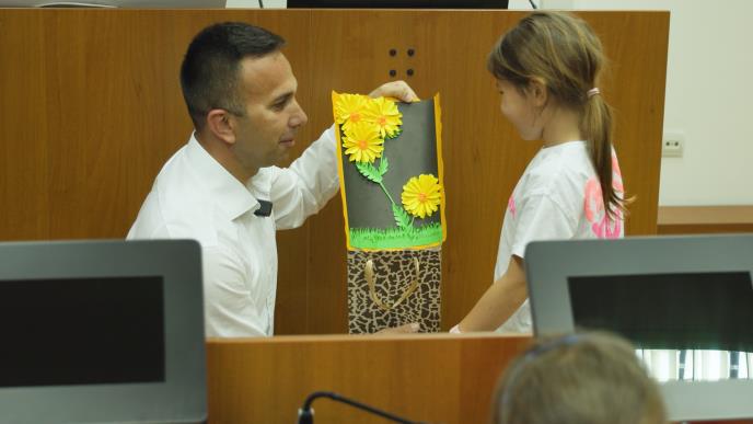 U srdačnoj atmosferi, deca su predsedniku uručila simboličan poklon koji su sami izradila, a zauzvrat su od njega dobila prigodne poklone kao znak pažnje i podrške.