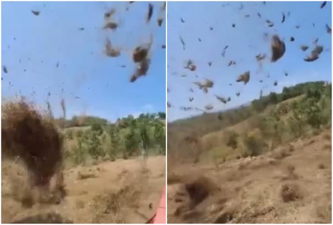 Na livadi u selu Vrdila kod Kraljeva usnimljeno je kako se pokošeno seno kovitla u vazduhu stvarajući mini-vrtlog koji na prvi pogled podseća na tornado.