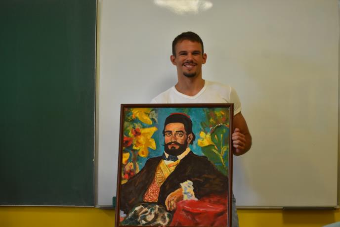 - Uživao sam na časovima profesorice Jelene Petrović. Poznajući moje slikakarske afinitete, profesorica me je iz šale pitala da li bih mogao da naslikam Njegoša. Iz poštovanja prema njoj, uradio sam ovu sliku. Moj ujak je slikar i podstakao me je da se još u detinjstvu oprobam u slikarstvu. To mi se svidelo, a poslednje tri godine slikam uljanim bojama na platnu. Ovo je, iskreno, najmanje što sam mogao da uradim za profesoricu- iskren je Aleksa.
