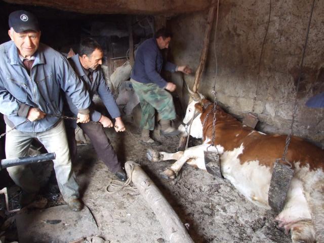 "Dešavalo se da nam na potkivanje dovode volove teške i do tonu i to je naopasniji deo posla, jer je reč o grdosiji koja lako može jednim udarcem da ubije čoveka. Ipak, mi smo napravili specijalni mehanizam koji uz pomoć kaiševa, potpuno bezbolno, podigne kravu, obori je na bok i mi onda krećemo da radimo. Tako je najbezbednije", tvrdi on.