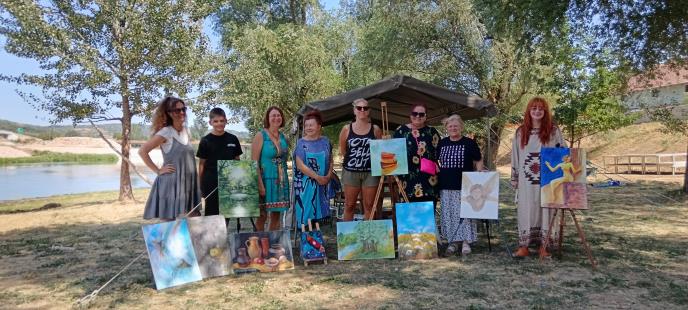 Pod krošnjama drveća  umetnici su platna ispunili motivima reke i mostova, pejzažima obasjanim letnjim suncem, poljima cvetova u pokretu, ali i mističnim prikazima kosmosa, živopisnim pticama u letu, portretima i figurama u toplim tonovima. Svako delo nosi pečat lične emocije, ali i zajedničku nit – ljubav prema prostoru koji inspiriše, bez obzira na promene koje donosi vreme.