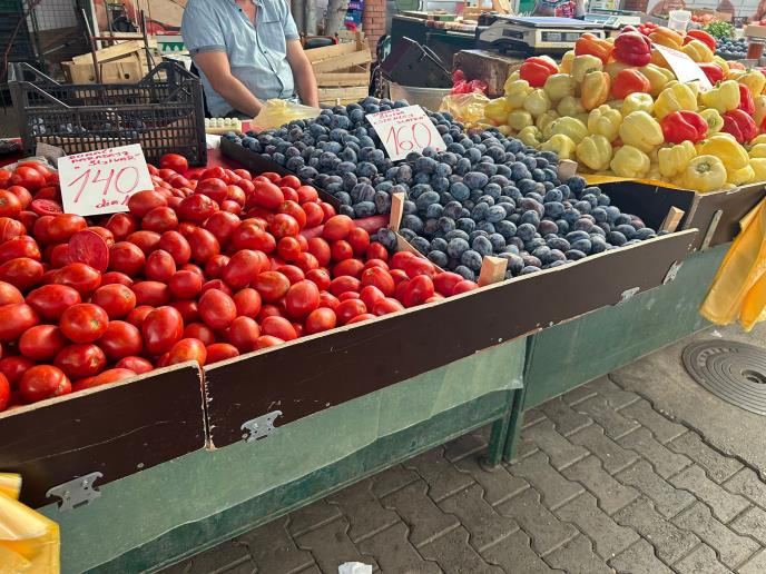 Na tezgama ima i voća i povrća za domaćice koje se odluče da prave zimnicu. Domaći paradajz sorte “šljivar” košta oko 140 dinara po kilogramu, babure su na akciji i za kilu istih potrebno je da izdvojite 130 dinara. Šljive, prave domaće prema rečima prodavca prodaju se 160 dinara za kilogram.