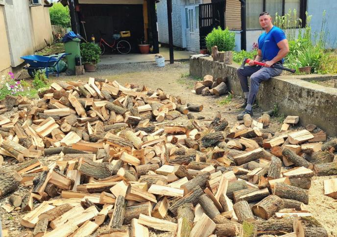 Viktor Božić (32), zvani Konan već petu godinu zaredom cepa drva besplatno u Rumi i okolini.