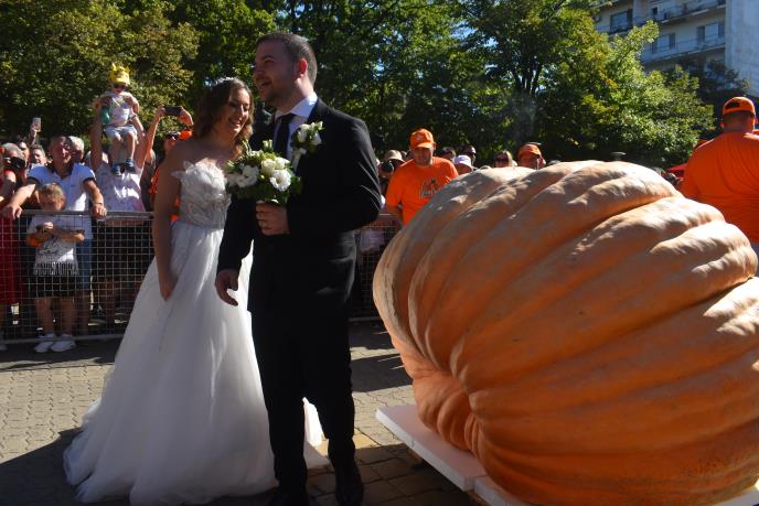 Dok su sudije bile zaokupljene pedantnim merenjem velikih i debelih bundeva, a proizvođači sa strepnjom očekivali rezultate, na sveopšte iznenađenje, kraj ove “Mađarice” pojavili su mlada i mladoženja. Zatečen je bio i petostruki šampion Tibor Kokai iz okoline Budimpešte.