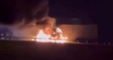 PRIKOLICA KAMIONA IZGORELA NASRED AUTO-PUTA! Vozač uspeo da se spasi (FOTO/VIDEO)