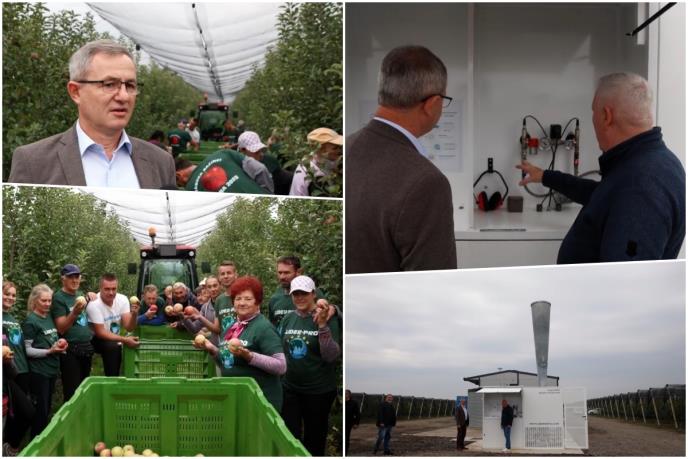 Scene su ličile na naučnofantastični film: usred redova jabuka, ispod protivgradnih mreža, nalazi se metalni džin koji na svakih nekoliko sekundi izbacuje zvučni talas. „E, to je naš čuvar neba!“ kaže uz osmeh domaćin, Slavko Popović. „Postavili smo ga početkom godine i već nas je nekoliko puta spasao od grada“, objavio je Agrobiznis.
