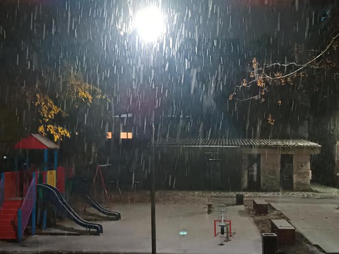 Kolovozi su vlažni, na mnogim ulicama već su se stvorile bare, s obzirom da je gotovo čitavog dana padala kiša. Uz osetan pad temperature u večernjim satima počeo je sneg, koji bez prestanka pada već tri časa, ali se, pošto je vlažan, brzo topi.
