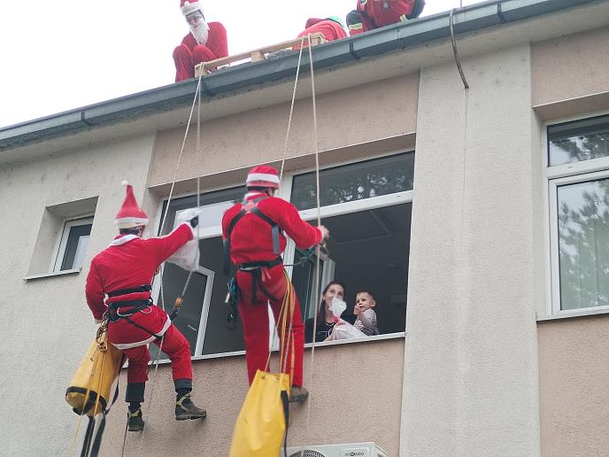 Iz Gorske službe spasavanja stanice Valjevo, ove godine je osam spasilaca učestovalo, a Mina Resimić je rukovodila akcijom dodele paketića spuštajući se sa krova Službe pedijatrije.