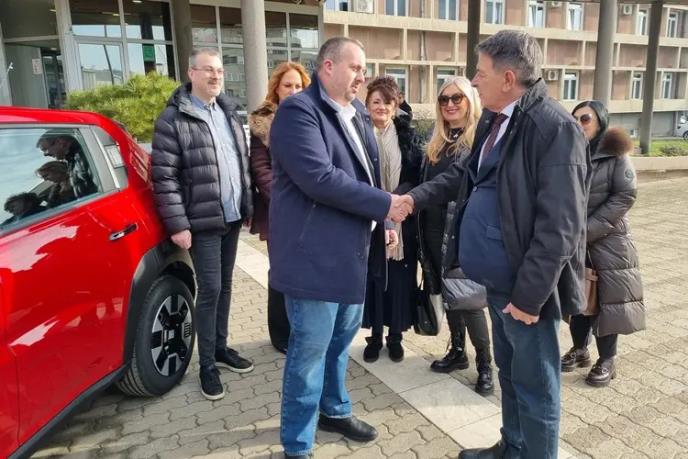 Zamenik gradonačelnika Dejan Ružić je na platou ispred Gradske uprave ključeve hibridnog automobila Fijat Grande Panda uručio direktoru Doma zdravlja Kragujevac, Vasiliju Antiću.