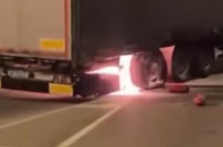 Naime, kako se vidi na snimku, u jednom trenutku buknula je vatra u predelu točka kamiona koji je prevozio pelet.