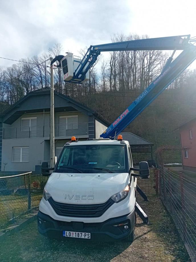 MALI ZVORNIK - Koristeći novo vozilo sa hidrauličnom platformom za rad na visini radnici Javnog komunalnog preduzeća ''Drina'' iz Malog Zvornika, uspešno su obavili radove na skidanju novogodišnje dekoracije i zameni sijalica ulične rasvete u mesnoj zajednici Centar, saopšteno je na opštinskom sajtu. Ovo je, kako se navodi, bila prva upotreba novog kamiona nakon njegove nabavke i sprovedene obuke zaposlenih za bezbedan rad na hidrauličnoj platformi.