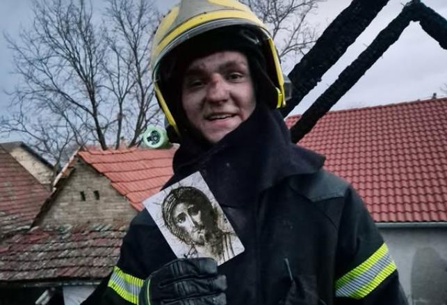 Na zgarištu, pripadnici vatrogasno-spasilačkog voda Bečej pronašli su ikonu koja je, uprkos vatri, ostala netaknuta.