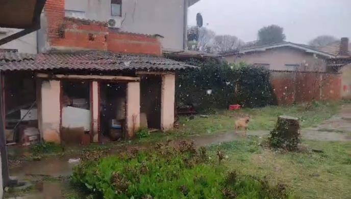 Uz sneg sa ne tako krupnim pahuljama pada i kiša tako da su ulice pune vode, bara, a negde i omanjih jezera.