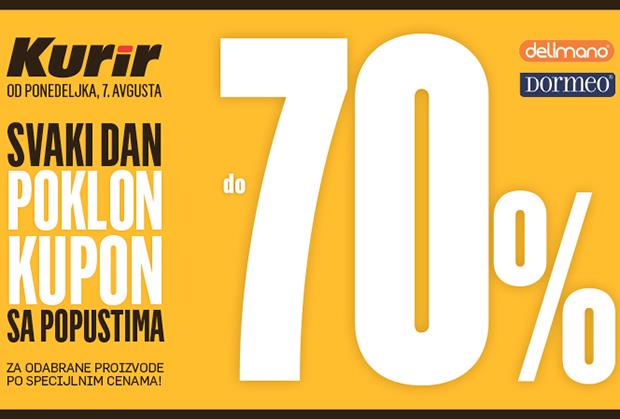 Od ponedeljka, 7. avgusta, Kurir vam poklanja kupone sa popustima do neverovatnih 70%. Svaki dan na akciji je nekoliko različitih proizvoda, a da biste ih kupili po specijalnim cenama, morate da imate kupone iz Kurira. Tako npr. uz kupon možete da kupite električnu turpiju za pedikir po ceni nižoj 60% od redovne, original Nutribullet za samo 7,990 dinara ili oštrač za noževe sa tri noža za samo 1,194 dinara. Svaki dan na akciji su drugi proizvodi.