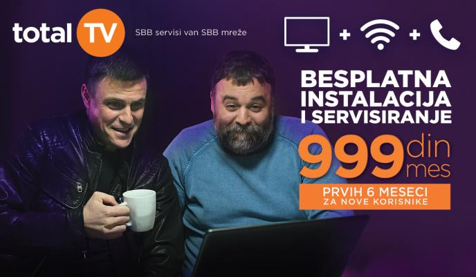 Za sve nove korisnike Total TV-a, SBB je pripremio atraktivne Total Trio Ekstra i Premium pakete po ceni od 999 dinara u prvih šest meseci. Novi korisnici će, osim do sada najvećeg broja kanala (više od 240) i interneta, dobiti besplatnonovu telefonsku liniju i telefonski aparat.