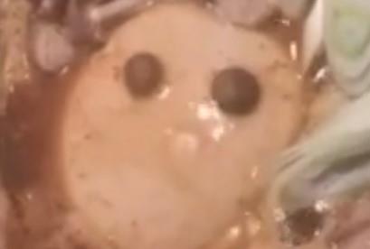 U pitanju je bio tofu sir koji je imao prorez u obliku usta kroz koje su izlazili mehurići, dok su dve pečurkice odozgo podsećale na oči.