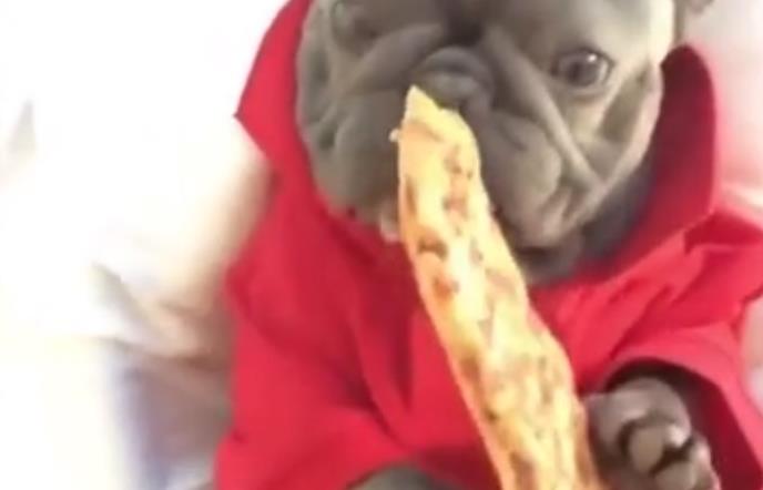 NJAM, NJAM! Ovaj BULDOG ne može da odoli pici! Pogledajte sa kojom je slašću jede (VIDEO)