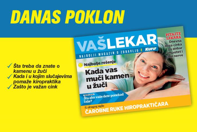 Za vas smo razgovarali sa dr Borislavom Toškovićem, asistentom na katedri hirurgije Medicinskog fakulteta i hirurgom u KBC „Bežanijska kosa“ o nastanku kamena u žučnoj kesi i najboljem načinu za rešavanje ove tegobe. Aleksandar Popović, manuelni terapeut, odgovara na pitanja zašto imamo problema sa kičmom i bolovima u zglobovima i zašto je hiropraktika dobra za sve te tegobe, dok docent dr Janko Samardžić, specijalista kliničke farmakologije, otkriva kako se sve ispoljava nedostatak cinka u organizmu,