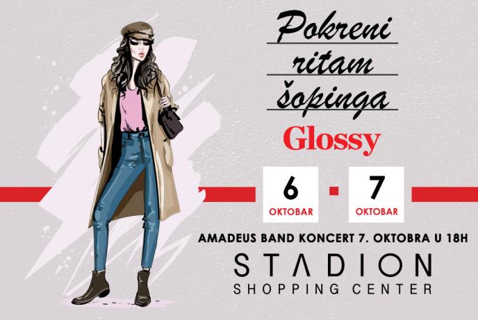 POKRENI RITAM ŠOPINGA UZ STADION SHOPPING CENTER I GLOSSY Pozivamo te na stilizovanje uz velike popuste i koncert Amadeus benda