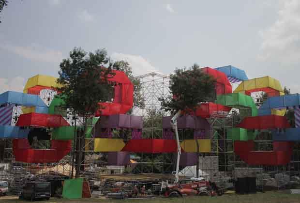 Za izgradnju ovog džinovskog stejdža korišćeno je čak 4.528 sklopivih delova, kao i 180 tona tegova, a bina je projektovana tako da izdrži nalet vetra i do 100 kilometara na sat. Čitava konstrukcija teška je više od 80 tona, a na njenoj izgradnji neumorno je radilo preko 100 ljudi čak dve nedelje.