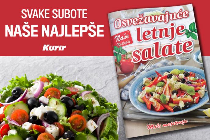Mnogima se tokom letnjih meseci smanji apetit, ili im teška hrana ne prija. Najbolje rešenje je okrenuti se laganim obrocima, koji će vam podići nivo energije. Kurir vam sutra poklanja dodatak Naše najlepše osvežavajuće letnje salate sa više od 40 ukusnih recepata. Neki od njih su: valdorf salata, salata ušće, salata od cvekle i rena, ljubavna salata, gruzijska salata, zelena salata sa šampinjonima, salata zelena mimoza, topla salata od tikvica, mirisna salata, salata od spanaća i paprike i mnogi drugi.