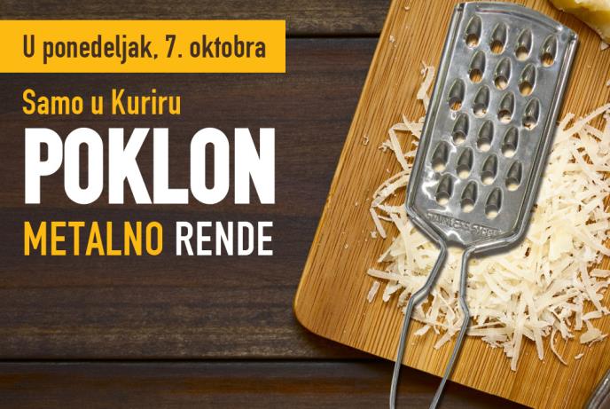 Možete da izaberete rende za sitnije rendanje, koje je idealno za namirnice kao što su polutvrdi i tvrdi sirevi, ili za krupnije, koje je pogodno za meke sireve, voće i povrće. Rende koje ćete dobiti uz Kurir je praktično i kompaktno, tako da ga možete odložiti u fioku ili okačiti na zid.