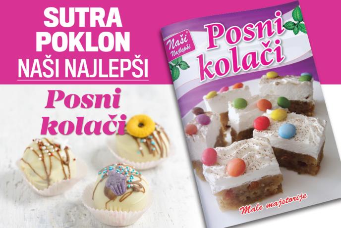 Sutra vas u dnevnim novinama Kurir čeka poklon dodatak Naši najlepši posni kolači gde možete naći preko 40 recepata torti, rolata, kiflica i drugih posnih poslastica.