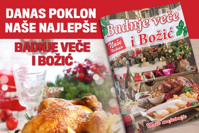 U današnjem poklon dodatku NAŠE NAJLEPŠE BADNJE VEČE I BOŽIĆ dobićete recepta za jela kojima ćete oduševiti vaše ukućane tokom ovih prazničnih dana. Neki od recepta koje ćete dobiti su: badnja večera, pita sa zeljem, beli kavijar, prebranac, jagnjeći pikljevi, čobanska mućkalica, kavurma, dimljeni šaran, jagnje pečeno u rerni, krompir s celerom, čokoladna oblanda, beli trouglovi, slatka salama, karamel kocke i mnogi drugi.