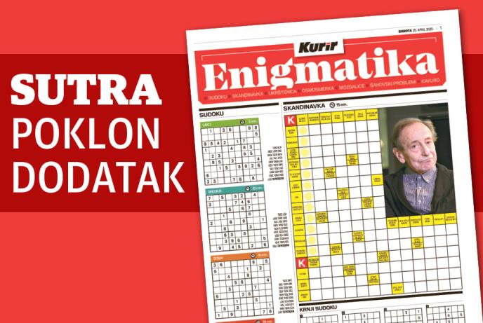 Sutra ćete uz dnevne novine Kurir dobiti na poklon dodatak ENIGMATIKA! Čekaju vas sudoku, skandinavka, ukrštenica, osmosmerka, mozgalice, šahovski problemi, kakuro, zbrajalice i još mnogo toga. Zabavite se tokom predstojećeg vikenda uz poklon dodatak ENIGMATIKA.