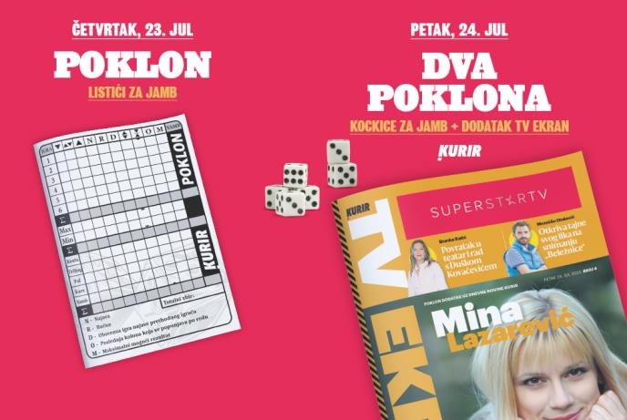 KURIR POKLANJA! U četvrtak, 23. jula, LISTIĆE ZA JAMB, u petak, 24. jula, KOCKICE ZA JAMB PLUS DODATAK TV EKRAN