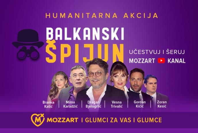 Više od 100.000 ljudi je na Božić bilo uz Mozzartov jutjub kanal i spektakl koji su te večeri priredile glumačke legende! Do sada neviđena postava „Balkanskog špijuna“: Dragan Bjelogrlić (uloga Ilije Čvorovića), Mima Karadžić (Đura), Vesna Trivalić (Danica), Branka Katić (Sonja) i Gordan Kičić (Petar Markov Jakovljević) briljirala je u prvoj zoom predstavi u Evropi! Svakim šerom linka humanitarne predstave „Glumci i Mozzart za vas i glumce“, u prva 24 sata od emitovanja, do 8. januara u 20 časova, Mozzart povećava iznos donacije za pomoć Udruženju dramskih umetnika Srbije!