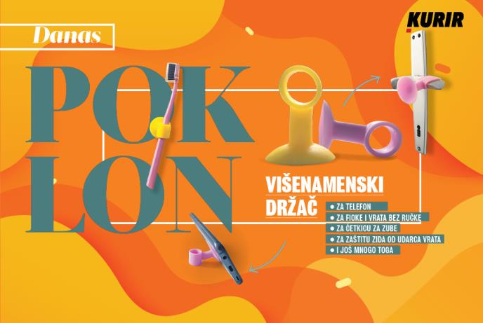 Danas dnevne novine Kurir svim čitaocima poklanjaju VIŠENAMENSKI DRŽAČ. Napravljen je od silikona i sistemom vakuuma se lepi za podlogu. Možete da ga postavite na mobilni telefon, kako biste uživali gledajući video sadržaje. Ukoliko u vašem domu imate vrata ili fioke bez ručke, samo ga zalepite kada vam je potrebno i povucite. U kupatilu će vam poslužiti kao držač četkice za zube, a možete i da ga postavite na kvaku od vrata kako biste sprečili da udare u zid.