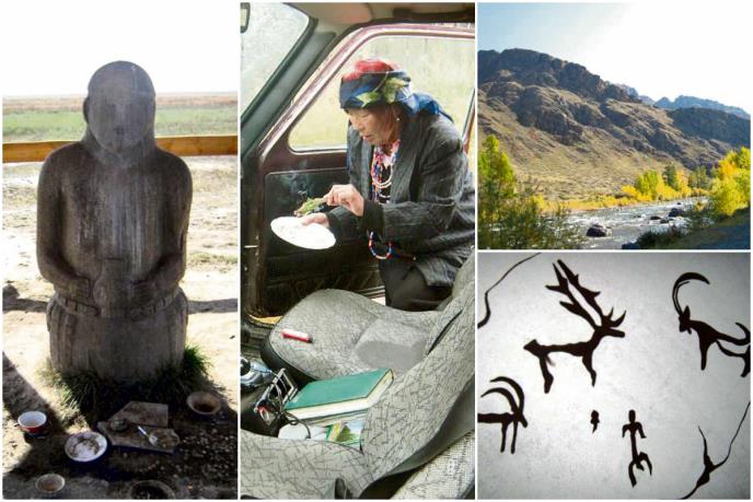 Stepa i planine centralne Azije zavičaj su turskih plemena od kojih su nastali i Tuvinci. Oni su po okolnim brdima rasuli bezbroj kamenih znamenja i petroglifa kao spomen na pretke ili istaknute generale i vojnike. To je bilo tako davno da moderna nauka jedva okvirno može da odgonetne pre koliko milenijuma su postavljeni. Ovde vreme u prostoru i prostor u vremenu izmešani teku, isprepletani daljinama. Ponekad mi se pak čini kao da je vreme ustuknulo pred ovolikim prostranstvom. Jedan pastir, dok je terao krdo konja u beskraj na pašu, reče mi da je ovde nekada davno vreme u svojoj brzini proticanja pokušalo da proguta sve, ali se zagrcnulo veličinom sibirskog prostranstva i, tako zagrcnuto, stalo. U takvom kružoku večnosti prostor krase i razdiru bezbrojni kurgani, grobnice hrabrih vojskovođa, brzih konjanika i ljudi neustrašivih koliko i mesto na kom su živeli.