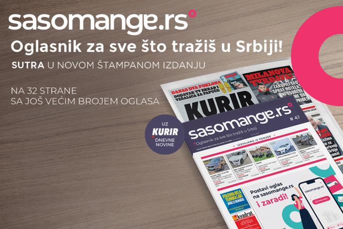 Sutra ćete uz dnevne novine Kurir dobiti na poklon Sasomange.rs oglasnik na 32 strane sjajnog papira gde ćete pronaći mnogo sadržaja, kao i veliki broj najrazličitijih oglasa.