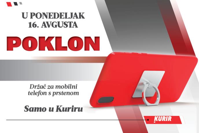Kurir nastavlja da iznenađuje sjajnim poklonima! U ponedeljak, 16. avgusta, dobićete DRŽAČ ZA MOBILNI TELEFON S PRSTENOM koji je veoma jednostavan za korišćenje - samo ga zalepite na svoj mobilni. Držač može da se rotira za 360 stepeni i sprečiće da vam telefon ispadne iz ruke. Idealan je za gledanje video materijala, samo postavite telefon na ravnu podlogu i uživajte u omiljenom filmu ili seriji.