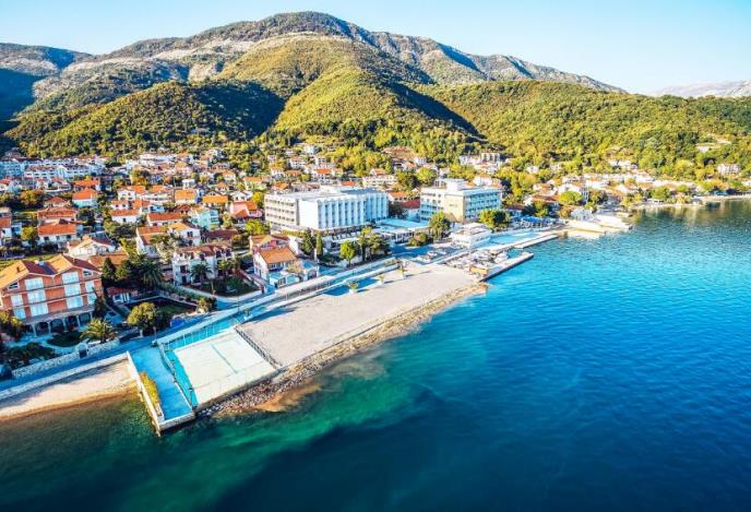 Sa sopstvenom plažom i pogledom na Bokokotorski zaliv od kojeg zastaje dah, hotel DELFIN BIJELA 4* predstavlja odličan izbor za odmor. Moderno opremljene i komforne sobe, bazen i salon lepote, kao i mini klub za najmlađe, učiniće boravak izuzetno prijatnim. Nalazi se u mirnom, ribarskom mestu Bijela (opština Herceg Novi), pored mora i sopstvene plaže. Plaža je šljunkovita i betonska i nalazi se ispred samog hotela. Za goste hotela plažni mobilijar je uključen u cenu. Usluga je polupansionska, a najniža cena u sezoni je 309 evra za 7 noćenja, tj 439 evra za 10 noćenja.