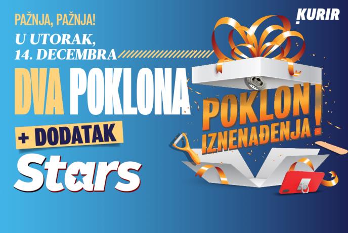 U UTORAK, 14. DECEMBRA, U DNEVNOM IZDANJU KURIRA OČEKUJU VAS DVA POKLONA! DOBIĆETE POKLON IZNENAĐENJA plus dodatak STARS!