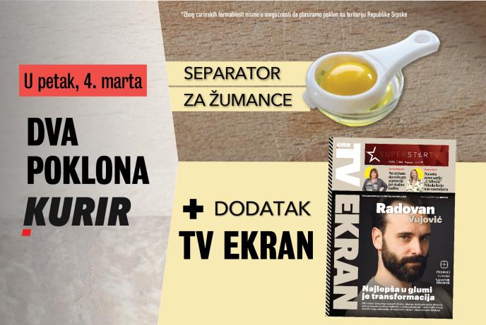 U PETAK, 4. MARTA, U KURIRU VAS ČEKAJU DVA SJAJNA POKLONA! UZ dodatak TV Ekran, dobićete na poklon SEPARATOR ZA ŽUMANCE