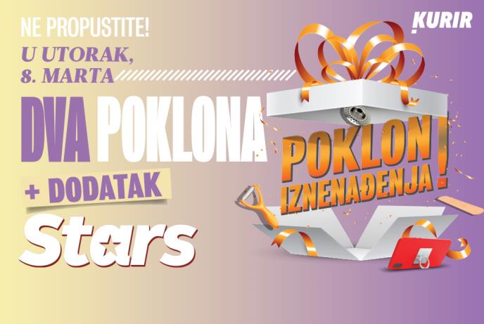 U UTORAK, 8. MARTA, U DNEVNOM IZDANJU KURIRA OČEKUJU VAS DVA POKLONA! DOBIĆETE POKLON IZNENAĐENJA plus dodatak STARS!
