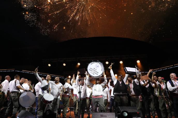 Reke ljudi i kolone automobila juče su se tokom celog dana slivale u Guču, a stadion na glavnoj pozornici bio je mali da primi sve zaljubljenike u trubu. Zvuk prangija označio je zvaničan početak trećeg dana manifestacije, a finalno takmičenje trubača simboličnog naziva SA OVČARA I KABLARA počelo je u 18 sati uz intoniranje himne i podizanje saborske zastave.
