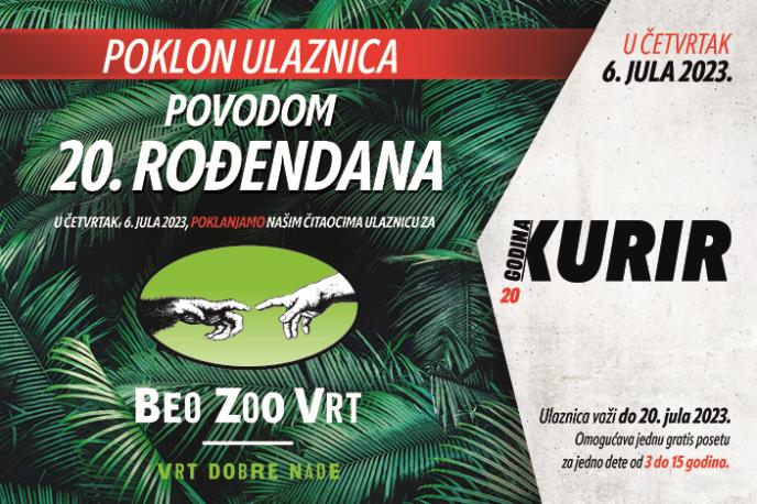 Najuticajnije dnevne novine Kurir obeležavaju 20 godina postojanja i tim povodom svim čitaocima, uz kupljeno izdanje dnevnih novina Kurir, u četvrtak, 6.jula poklanjamo ulaznicu za BEO ZOO VRT