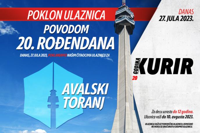 Danas vas na naslovnoj strani Kurira čeka poklon kupon uz koji ćete vaše dete moći da odvedete besplatno na Avalski toranj. Jedna ulaznica važi za jedno dete uzrasta do 12 godina i možete je iskoristiti u naredne dve nedelje, do 10. avgusta.