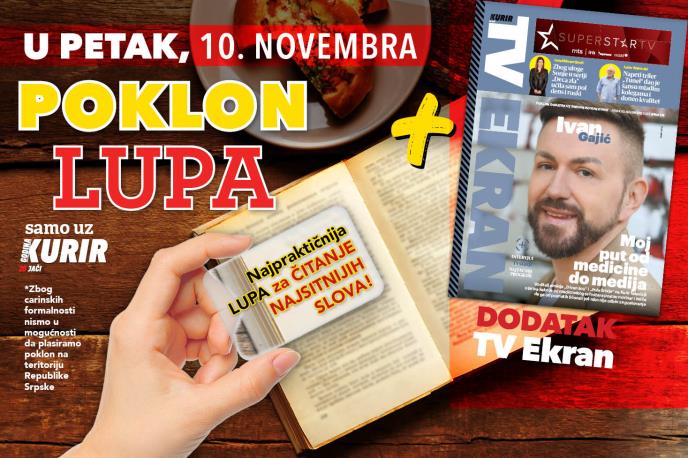 Dnevne novine Kurir su pripremile još jedan koristan poklon za sve čitaoce. U petak, 10. oktobra, čeka vas poklon LUPA za čitanje najsitnijih slova plus dodatak TV Ekran.