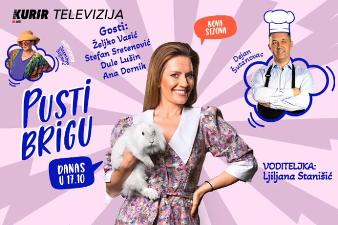 Nedeljno popodne rezervisano je za dobru zabavu uz emisiju "Pusti brigu" na Kurir televiziji! Ove nedelje, pored dobro pozantih domaćina Ljiljane Stanišić i Dejana Šutanovca, vikend će upotpuniti i učiniti još zabavnijim sjajni gosti Željko Vasić, Dule Lušin, Stefan Sretenović i Ana Dornik.