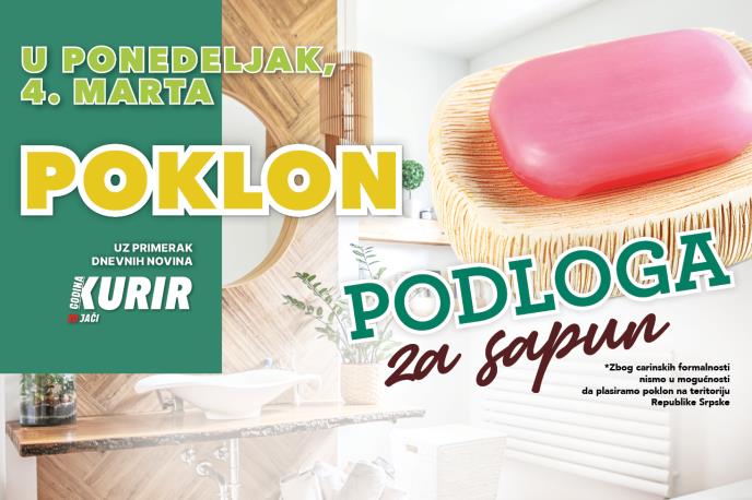Dnevne novine Kurir u ponedeljak, 4.marta, svim čitaocima poklanjaju praktičnu podlogu za sapun!