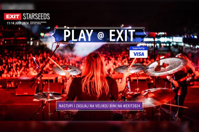 EXIT festival i kompanija Visa i ove godine raspisuju tradicionalni Play @ EXIT konkurs, u okviru kog će ukupno šest izabranih autorskih bendova ili izvođača imati priliku da nastupe na kultnim Visa Fusion ili Explosive binama na ovogodišnjem izdanju festivala od 11. do 14. jula, a prijave su otvorene do 29. maja!